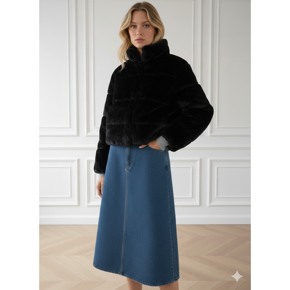 La Veste Inès est la pièce maîtresse à avoir dans son dressing cette saison. Conçue dans une fausse fourrure d’une qualité exceptionnelle, elle offre un toucher d'une douceur absolue et un volume parfaitement maîtrisé pour une allure sophistiquée sans effort.