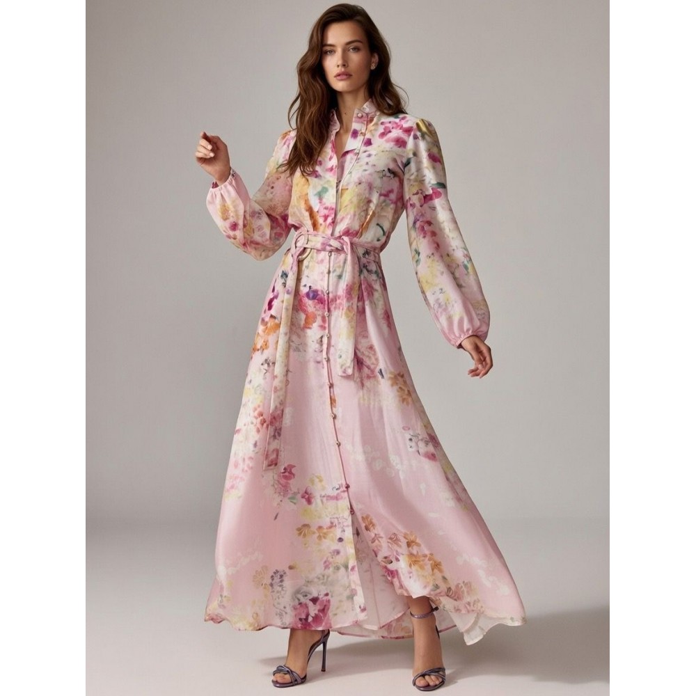• Imprimé : Un jardin fleuri délicat sur un fond rose pâle poudré, apportant une lumière immédiate au teint.