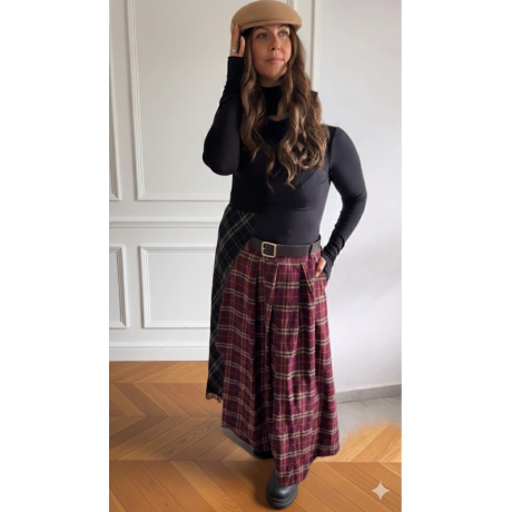 Redécouvrez cette pièce d'exception que j'ai soigneusement choisie pour sa qualité irréprochable. La jupe Éléonore se distingue par sa matière épaisse et noble, parfaite pour structurer la silhouette avec élégance. Son imprimé à carreaux dans les tons bordeaux apporte cette touche tendance et chaleureuse qu'il manquait à votre garde-robe.
