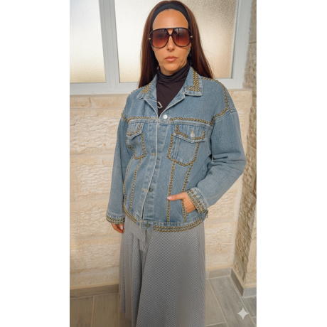 Oubliez la veste en jean classique. La Veste Inès est une pièce forte, travaillée pour celles qui veulent allier l'esprit rebelle du denim à l'élégance du détail. C'est l'exclusivité que votre garde-robe attendait.